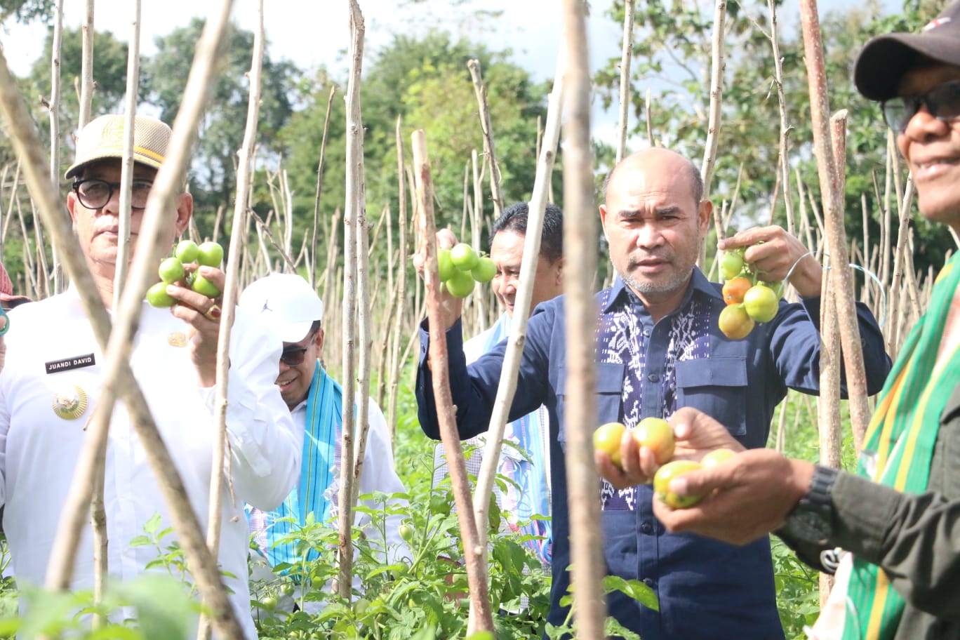 KEFAMENANU,PASOLAPOS.COM – Dalam Lanjutan Kunjungan kerja hari ketiga di daratan Timor Gubernur NTT, Viktor Bungtilu Laiskodat meninjau sekaligus memanen perdana lahan holtikultura jenis tomat di Kelompok Tani _Secret Farming_ yang terletak di Kelurahan Maubeli, Kecamatan Kota Kefamenanu Kabupaten TTU, Kamis (6/7/2023).